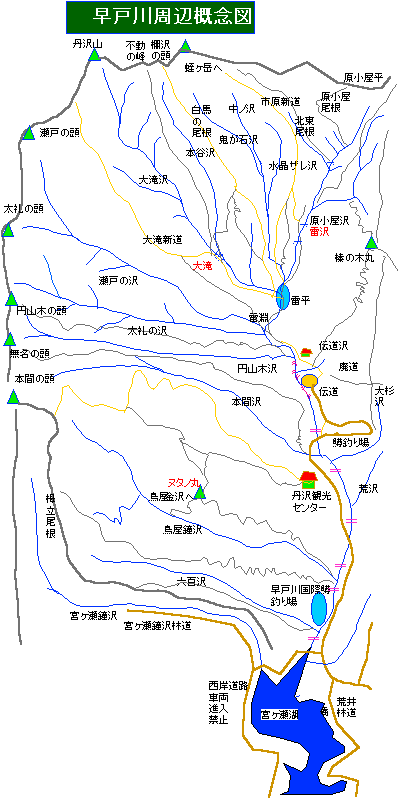 そうだそうだ、元もとそう公言しているんだから逃げ帰ることに何の衒いがあろうというもんさ。方針どおりじゃん、しかし、手ぶらで帰るのはもったいないと再び貧乏人根性は考えてしまう。時間のかかる山回り(蛭ヶ岳経由)は止めても大滝は見て帰ろう。ついでに大滝上から瀬戸の沢出会いに降りる尾根も廻ってみようと決める。