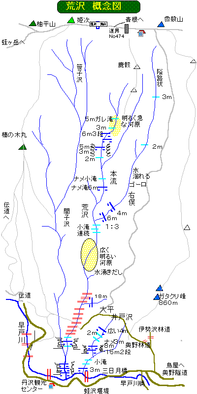 荒沢の一度目は早戸川の出会いから大平まで行ったが、上流の砂防堤の林立を見て引き返した。2度目は隣のマゴ沢が結構良い沢だったので意を決して行った。沢自体は、どうと言うこともなかったが、上流の小さな尾根筋は、ゆったり歩くには良い気分のところだ。今日は、その荒沢の途中で、右に分岐する支流に行こうと思う。多分、難しいところはあまりなく、詰めは避難小屋のあたりに抜け出るだろう。早戸川から荒沢までは、ちょっと前に登っているから、そこは江戸沢を登ることにしよう。