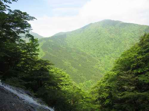 大滝の上から振り返り見る榛の木丸(P1092m)はとても大きい