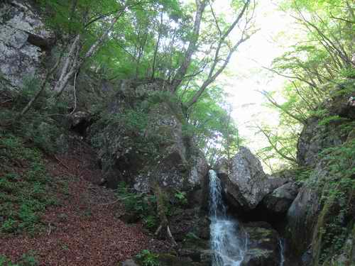本日はこの滝の下を右に別れる小沢に入って稜線に至る