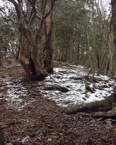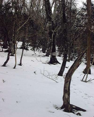 太いブナの樹林帯を過ぎると雪はあっと言う間にその量を減らし、凍った土の硬さが足に響く。