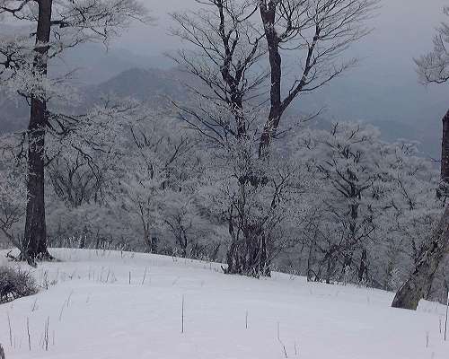 樹氷は水晶ザレ沢を登ってきたとき(12月)に比べると痩せていてさびしい。