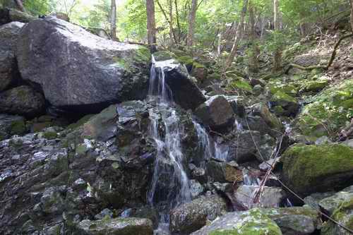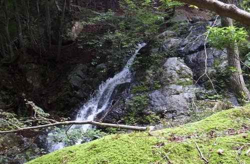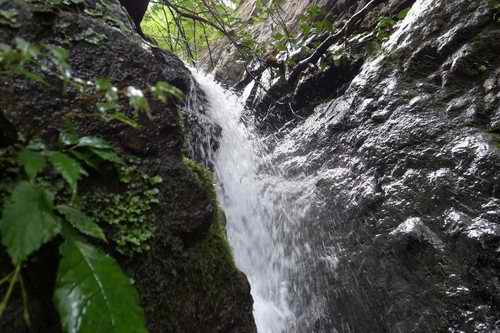 沢の周囲には苔にむした伏石が何カ所にも散らばっていて、そこらのブナの根っこの至る所から水が浸み出す。三段の小滝は水の流れる中の岩が感触良い。幾分か手が冷たい。