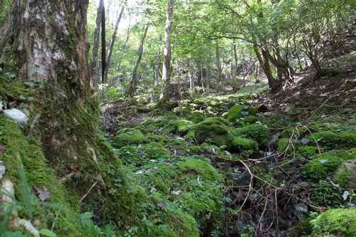 本流の水も幾らも進まないところの苔石の下から湧き出していて、そこを通り抜けると水はなくなる。
