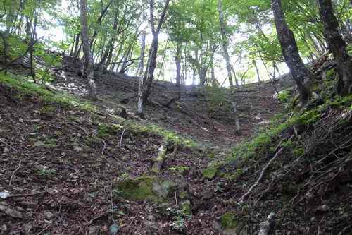 右岸側には、二箇所ほど崩壊地があって、この上に上がれば登山道(本間の頭〜丹沢観光センター)には近いのだろう。