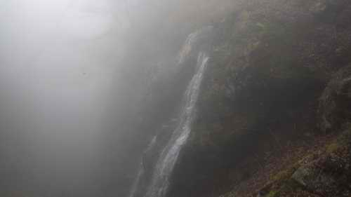 霧は30m先が見えなくなることもあったが、雨に変わることは一度もなかった。写真は霧に明るさを合わせると滝の岩は白く抜けてボウッと迫力無く写る。今日は写真も適当で良いさ。