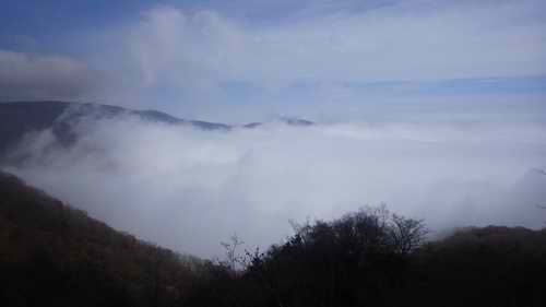 しかし、雲の中を予想した宮ヶ瀬でも、雲と地の距離は変わらず、山には霧が流れ、所々で切れて窓のように姫次が狭く見えている。