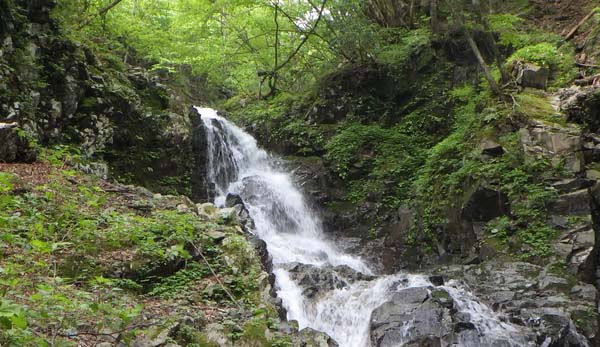 三連続の小滝を過ぎて、湧水窪の湧き水を飲む。