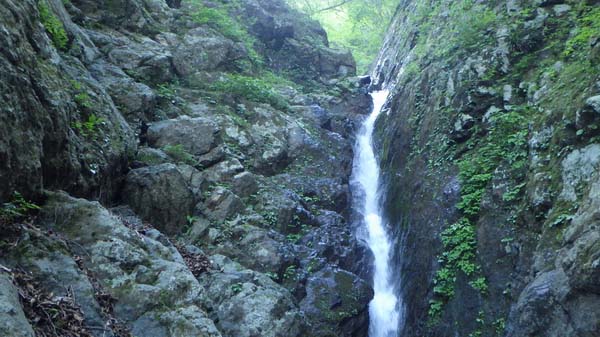 水量が多くて、水べり岩場近くに囂々と水が流れていて、いつもなら快適に登れる小滝も、もろのシャワーになりそうな感じで、濡れるのが嫌いな者にとって「ちょっとゴメンだな〜」って感じだったのだ。