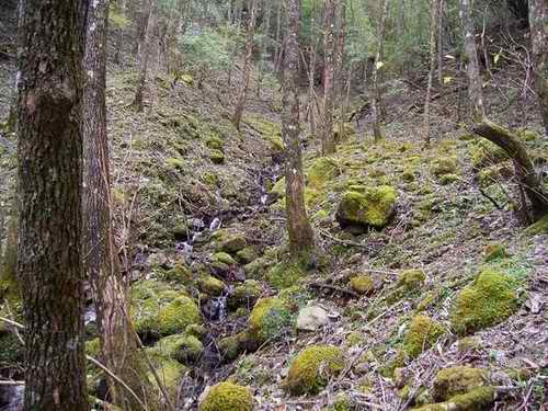 砂防堤群を左から5個ほど越した箇所から探していた左岸の仕事道に入り、それが右手尾根方向に進み出す部分から沢に戻る。沢の左岸に直ぐに湧水穴が待っている。そこで岩水を一口飲めば、今日も渇き知らず、飲み物いらずにすむ。