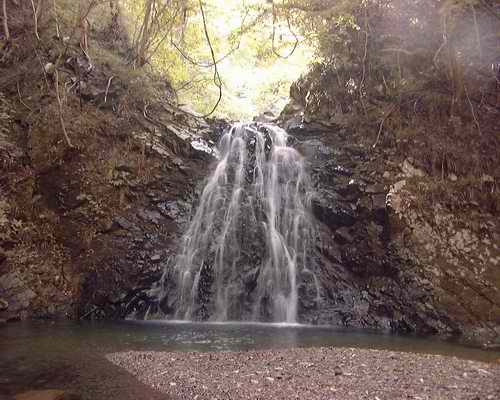 水沢川下流に八丁の滝があったが、今は湖の水位が下がったときにしか姿が見られず、本流で常時見ることの出来る唯一の滝がこれである。落差は6mほどと大きくはないが、両岸の岩が川幅を狭くして、流れてくる水を一気に落とす滝はかなり良い感じだ。15年前は林道から滝下に降りるための道が付いていた。滝壺下流側に砂の広場が設けられていて、そこでバーベキュ・キャンプなどを行っているのを何回か見たことがある。でも今は林道から降りるためには藪の中の不確かな踏み跡を降ることになる。人が使わない道は廃れる。