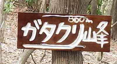 急な下りが緩くなって、鞍部につながり、そこから登り返せばP860m、ガタクリ山はそのもう一つ先のピークであり、地形図上では三角点のないP860m、木の枝に「ガタクリ峰」という表記板が下がっている。そこがガタクリ山なのだろう。