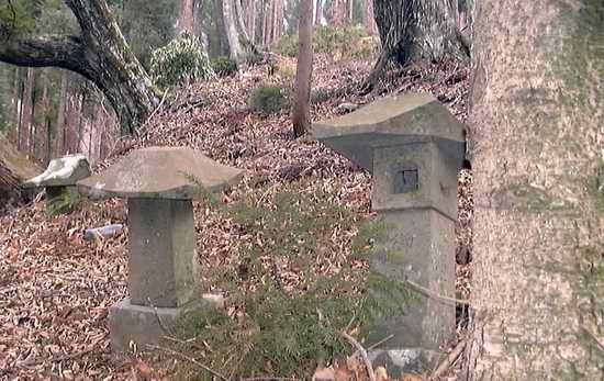 2個ある。小さいがほこらもある。山の神だった。お供えをした跡はない。