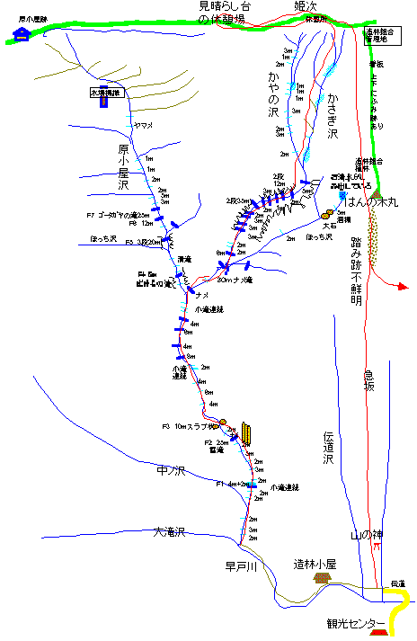 途中、更に、かやの沢と分岐し姫次に上り詰める沢である。