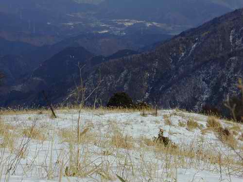 そんなに時間はかからない予定だった。植林帯の中を葛折の道で踏み跡をたどり、明瞭で良い道をその辺で拾った枯れ枝を使ったスキーのクロスカントリーのストック登りで、距離競技第一人者の今井さんには負けるが、複合の荻原健二さんになら勝てるほどのスピードで飛ばしたから、気分的には20分ぐらいで草原帯まで行ったつもりだったが、1時間はかかったようだ。どうやら荻原健二さんに勝つつもりだったのは意気込みだけだった。それを現実をかかった時間とハアハアの息が示す。