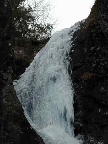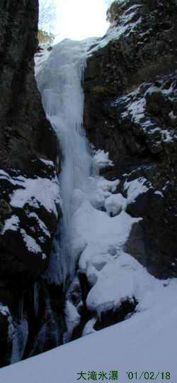 寒いから雪が降るのは北国の話であって、関東南部などは春の前兆として南岸低気圧が通れば雪は降る。否、氷瀑などは雪が降ると、雪で岩や水が外気から遮断されてしまって、かえって保温される様な状態となって凍結が進まないことになる。それが証拠に大滝は前回(1月20日)と比較すると、確かに上部の氷は更に発達したが、下部は氷が融けだしたように感じる。