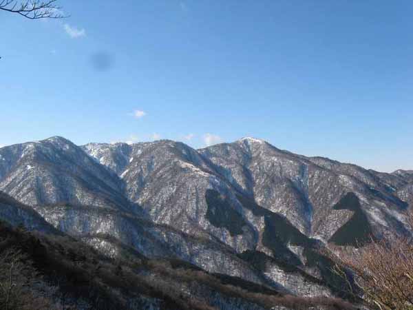 下降中の尾根から見る蛭ヶ岳(右肩に南ア連峰がのぞく))