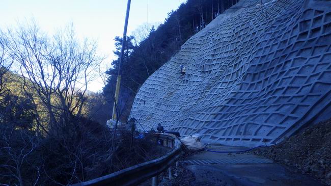 林道法面が一昨年に大崩落して以来、何回かに分けて行われてきたココの工事も終盤にかかっているはずである。