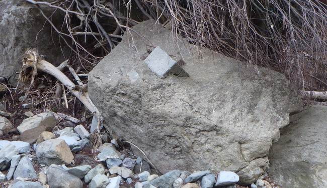 上端にコンクリ製の祭壇が付き、そこまで登る金属製のはしごもあったのだが、その大岩が見当たらない。