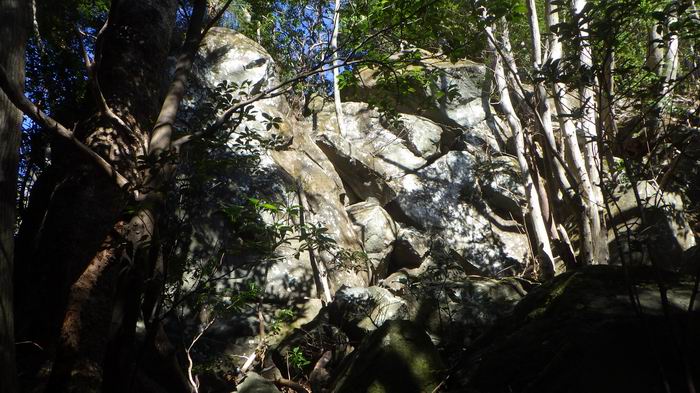 本流から百五十mほど登ったところに10m程の高さの岩が行く手を塞ぐ。
