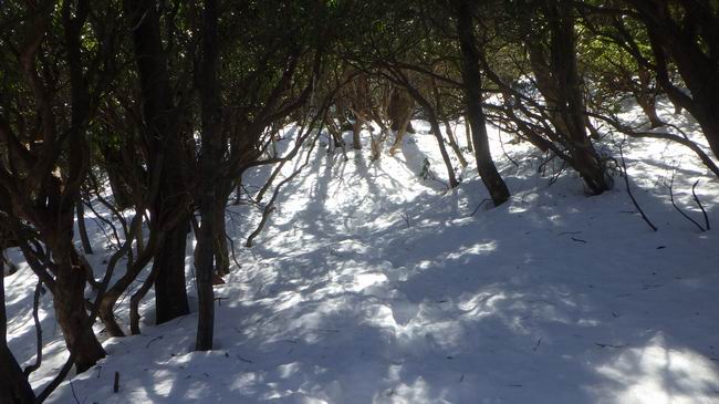 積雪は徐々に厚くなるが、トレースしている限りは全然雪に沈むなんて事はなく、本間の頭での最大積雪は30cmだ。