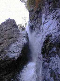 水落ちる全体のさまは、棚の右側のガラ場に立つと見えてくる。飛沫が体に飛び散る。水量の多いときには大きな爆音が狭い峡谷にとどろき、全く豪快である。東丹沢もっての名曝と私は思う。(まだ見ていないところが有るかもしれないが)