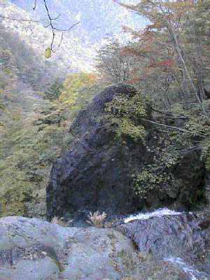 河原の大石にペイントに導かれて右に本流を分けて大滝沢に入る。