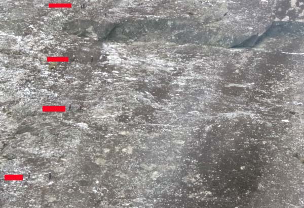 画像調整しつつ見ていたら前衛壁に打たれている登攀用ボルトが見えたことだ。取り損ねだが、返って正常画像よりは岩壁中の異物の輪郭をクッキリとさせたように思う。