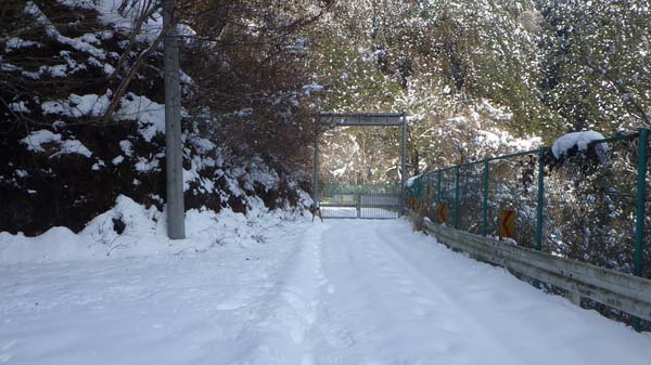 厳冬と言うが、この日は暖かであり、一番寒い朝の時間帯なのに路面雪がようやく凍っているというくらいで、日が出れば直ぐに溶け出すだろう。鱒釣り場閑散期対応の入口は奥側の一箇所の限定営業らしい。