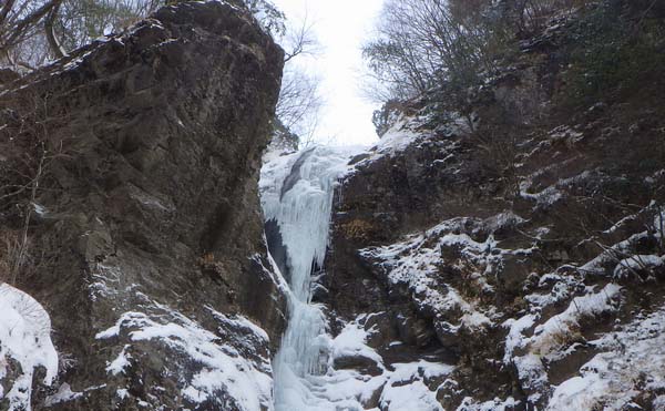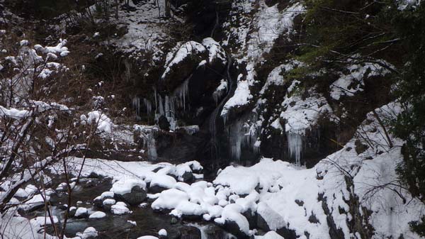 ただし、岩に張り付いた氷が弛んでいるようにも見えた。本日は暖かく氷が溶けかかっている。