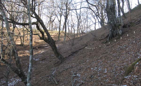 P1043m付近から鳥屋金沢右岸尾根(出会いのフィッシングセンターに下る)への入口部