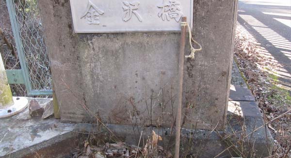 その金沢橋の橋名称板の脇に、今回の杖を残置する。