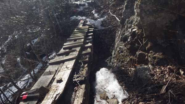 足元をしっかり見て、経路の崩れそうな桟橋は要注意して渡ろう。