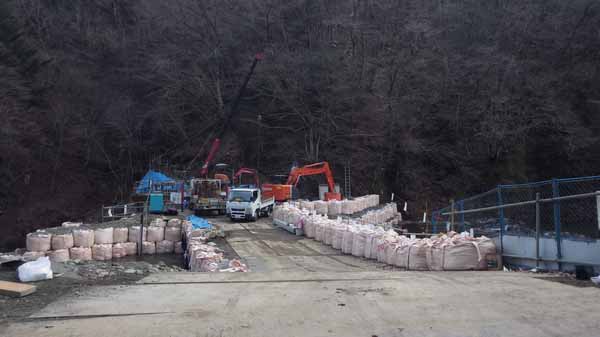 その上流50m(マス釣り場直下)の堰堤では先々週よりも一層工事規模が大きくなったように思う。