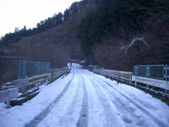 三日月橋を通過すると全面凍結 (大平への旧道路分岐付近)