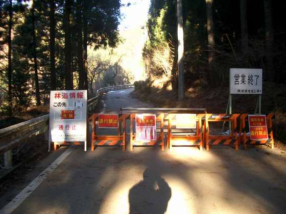 マス釣り場奥の入り口のところで林道は遮断されていた。