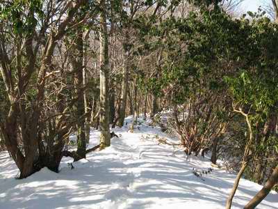 太礼の頭付近 登山道 大勢に歩かれている 稜線の雪は若干浅い