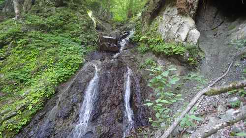 右に行くと、それも直ぐに二つに分かれる。右が涸れていて、左には小滝があって水が落ちている。