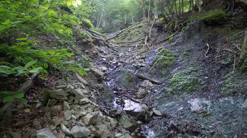 まずは瀬戸ノ沢の最初の小滝を見に行く。そこから30mほどの隣になる太礼の沢側に移って、歩き出す。