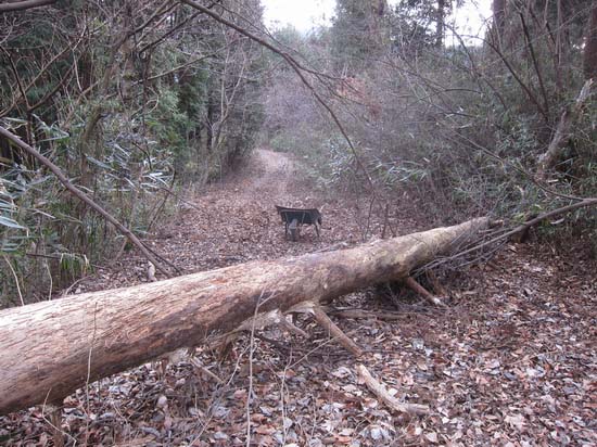 僅かに歩いたところで倒木でふさがれていた。