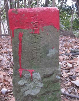 境界杭 左;鳥屋村 右;青野原村