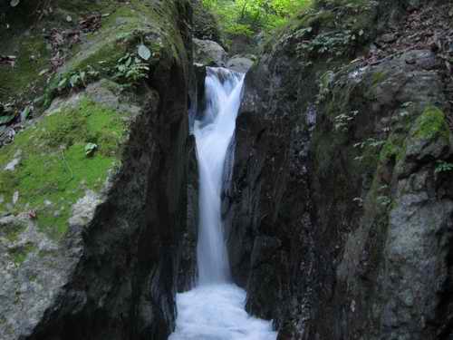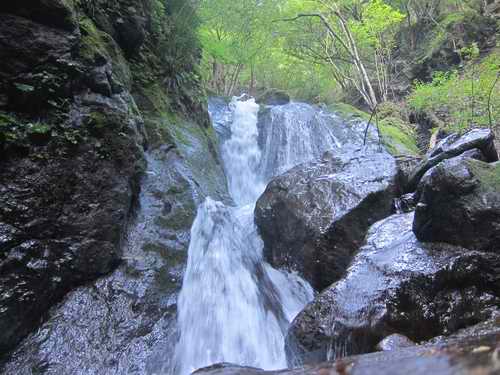 それに続く緩い岩畳状では水垢に足を取られないように滝に寄っていく。でも実際は奥の滝を見上げるのに忙しく注意は散漫だ。