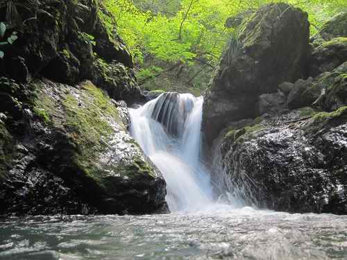 出会いからの小滝・ナメ部分を通過すると、沢はそれまでとは一転する。