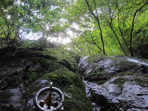 このように見るだけだったが、滝本体に古い残置が残っているから巻かずに突っ込んだ人もいて、これは登れる滝らしい。