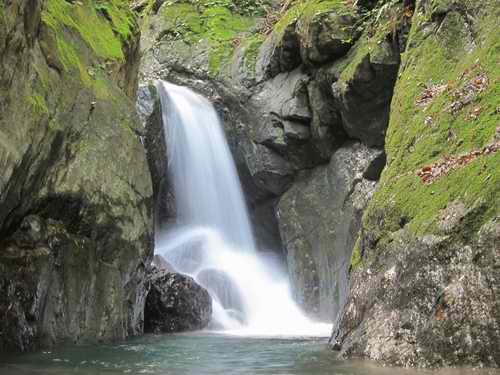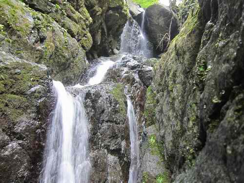 それでも倒木の下に小滝が二個ほど連続し、その奥にホントの大きな滝があるのは分かった。両岸は高く立っている。