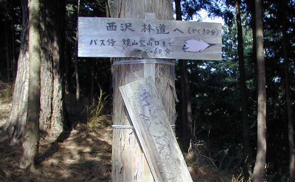昨日までの仕事を今日はお休みにして、町に降っていった仕事人の山道具がニ式ビニールシートに包まれデポしてある場所からは踏み跡が少し薄くなり、神奈川県森林公社の境界杭がある急傾斜の植林帯を息こらして登って【焼山2.3 平戸4.4km】の標識ポイントで登山道に出る。