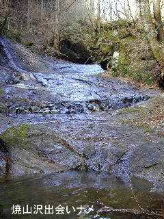 ダートの林道を焼山沢にかかる橋から降りて、この沢唯一の売り物であるナメを歩く。凝集岩の上に水量が少ないところが残念だが、見方によっては、なかなかの規模のナメが続く。