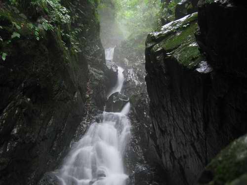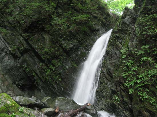 雨のせいらしく、沢の中は暗い。暗い谷間の中を、滝を落ちる水だけが白く光っている。出会いの滝から滝が終わるまでそんなように感じた。これって蛭が最も活動活発になる状況とイコールなんだろうかな。