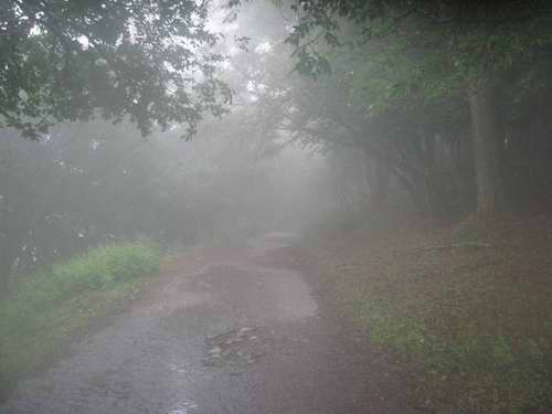 西山林道を歩く間に追い抜いていく人も行き交う車も全く無く、徐々に雲が厚くなっていくのは分かる。でもね単に雲の中に入りこんだ分だけ雲が厚く感じるって事だよね。天気が変わった訳じゃないさ。
