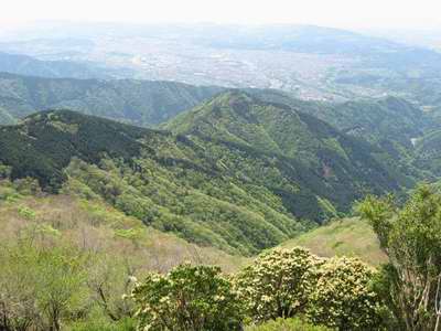 小丸の当たりで小尾根の登りが終わる 中央は大倉尾根 左は勘七の沢
